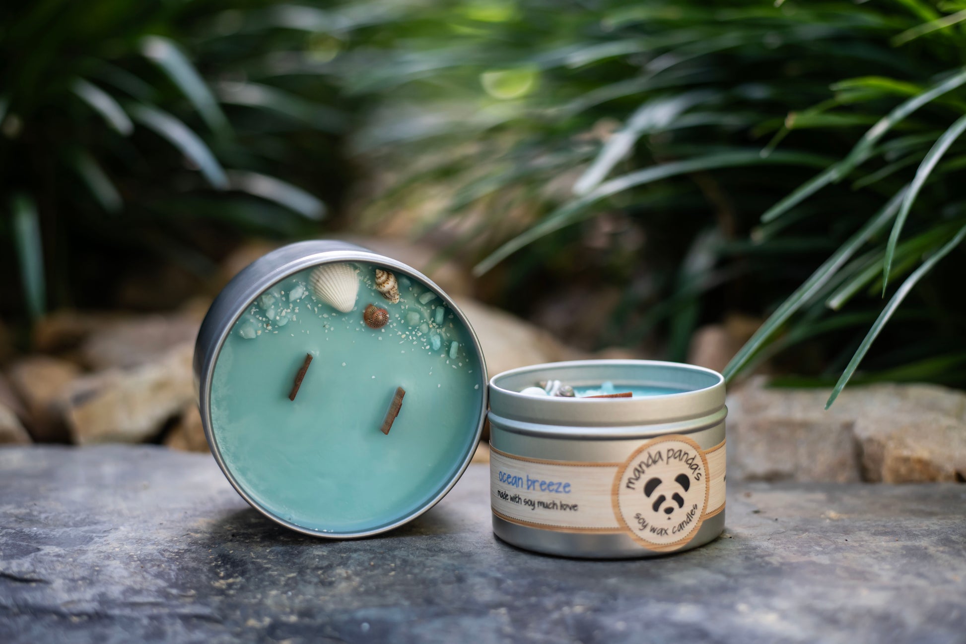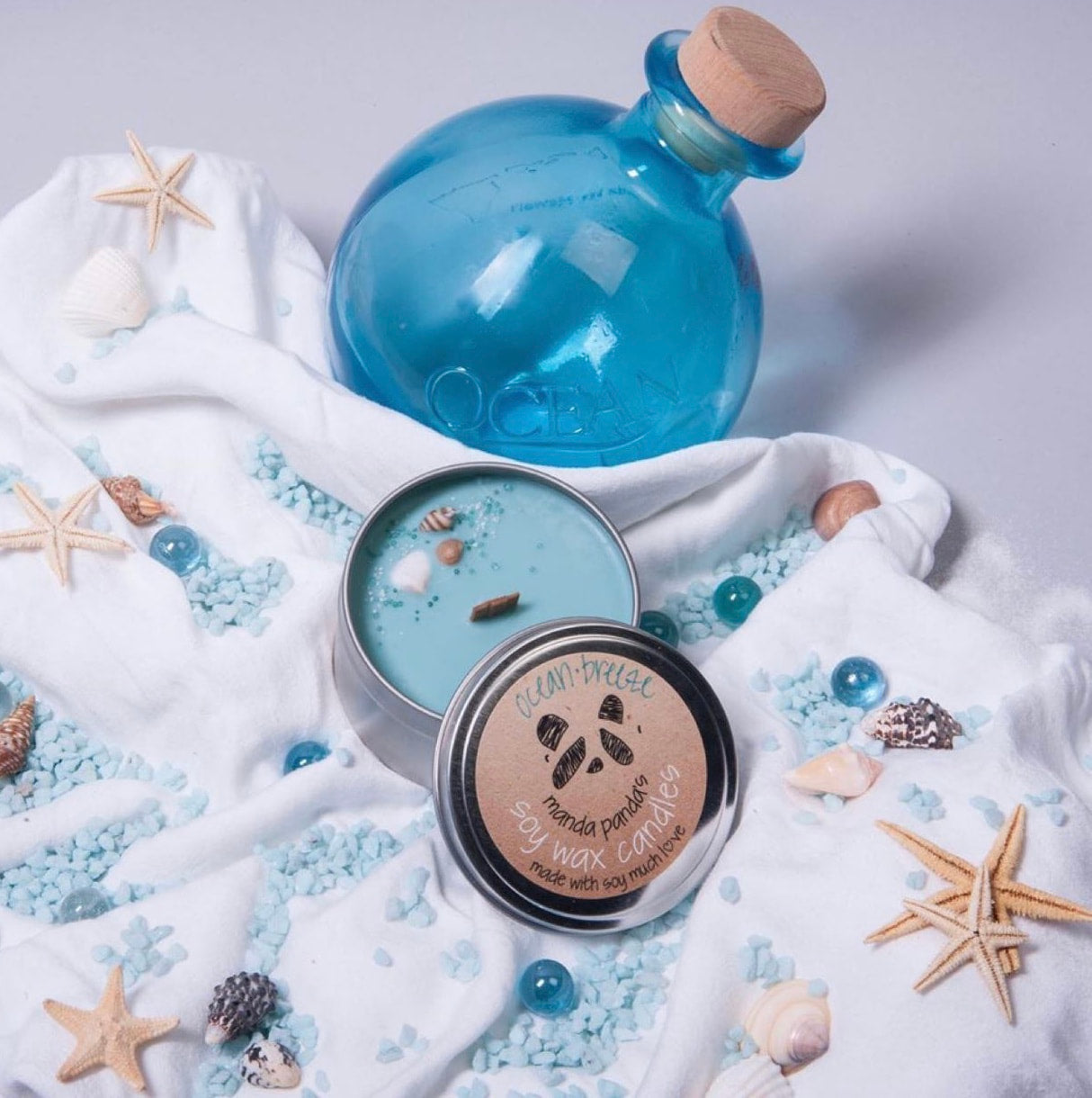 Feel the softness of the ocean as the breeze passes through with our Ocean Breeze soy wax candle. Top Lemon, Lime, Sea Salt Middle Ozone, Marine, Green Floral Base Cotton Blossom, Musk, Violet, Wood