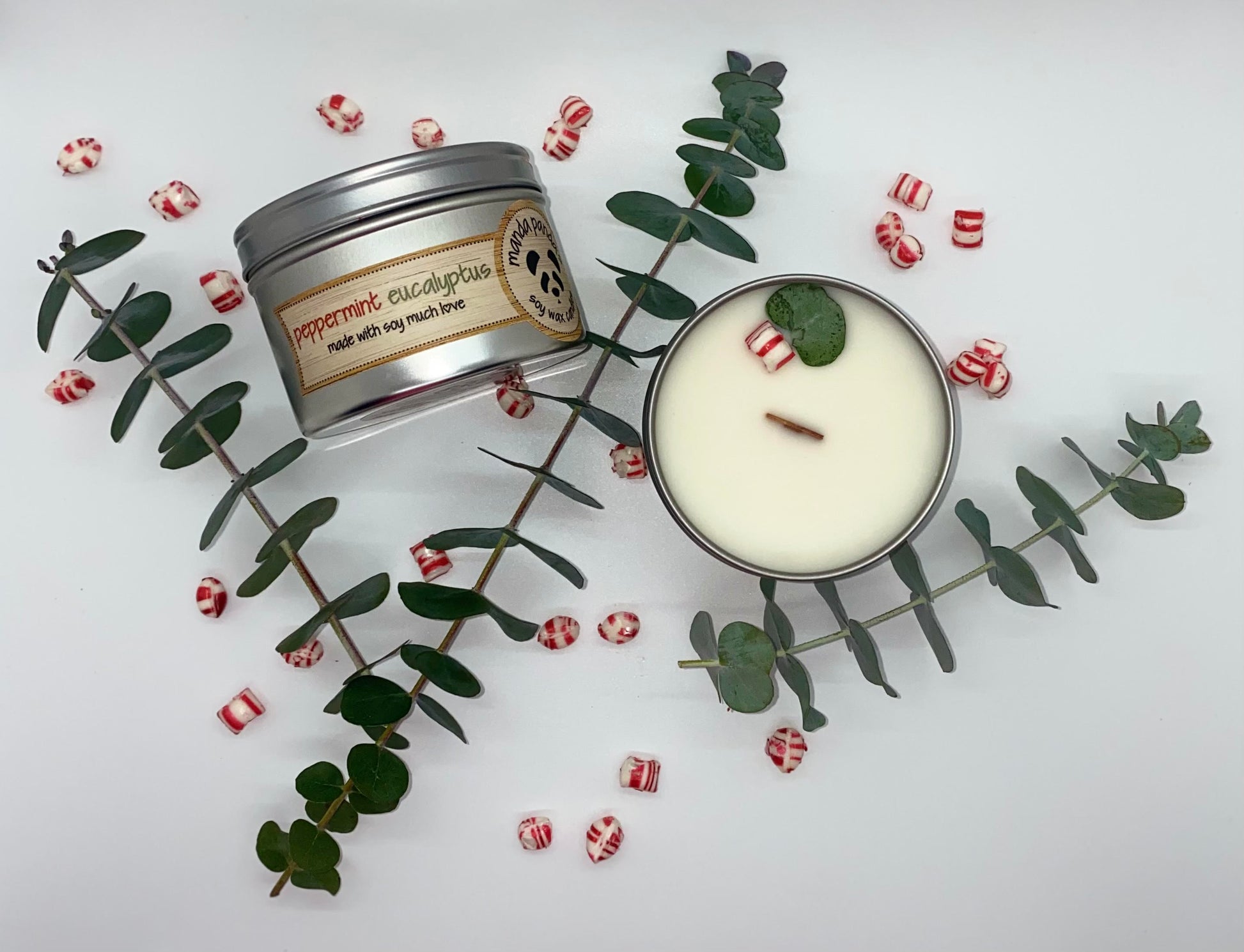 Bring the refreshing spa-like aroma of sweet peppermint and earth eucalyptus to any space with our Peppermint Eucalyptus soy wax candle. Top Peppermint, Eucalyptus Middle Clove, Cedar Base Patchouli, Vanilla, Powder