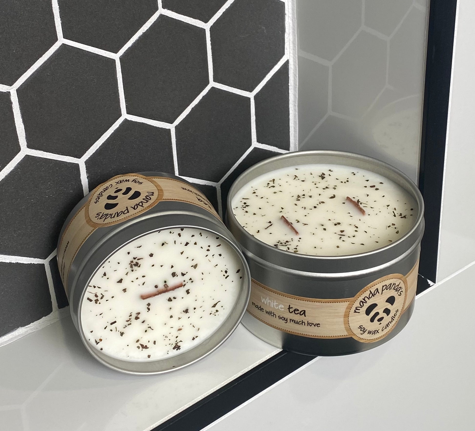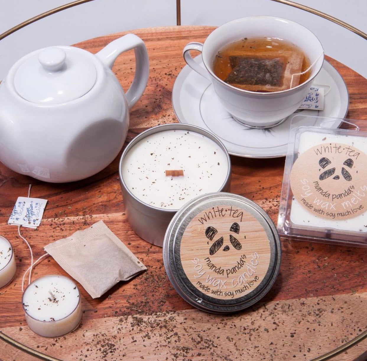 The luxurious spa blends from our White Tea soy wax candle bring a refreshing citrus aroma you'll want to fill your home with. Top Mandarin, Lemon Middle Bergamot, Ginger Base Jasmine, White Tea